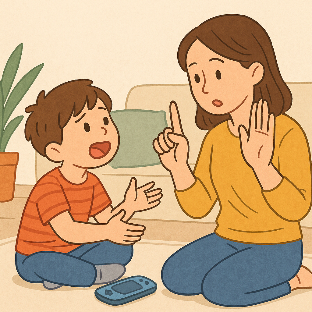 예: “5분 후에 TV 끄기” → 시계 보여주며 함께 확인하기